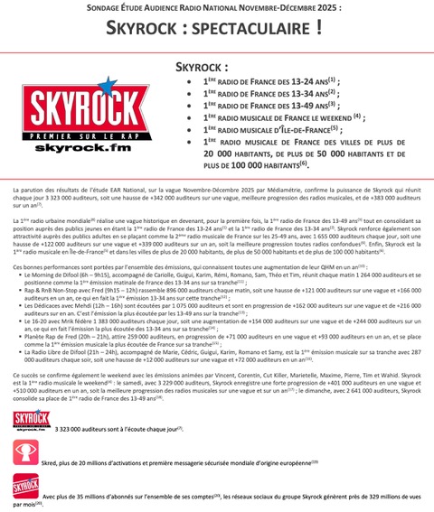 Bien plus qu’une radio pour les jeunes, Skyrock séduit aujourd’hui un public adulte grâce à l’essor du rap devenu un véritable phénomène culturel.